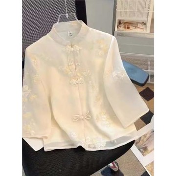 撤回余單大牌新中式立領刺繡棉麻襯衫女夏季禪意漢服旗袍小衫上衣