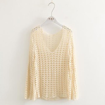 【米蘭精品】針織衫長袖毛衣-寬鬆鏤空針織毛衣女上衣3色74jl44