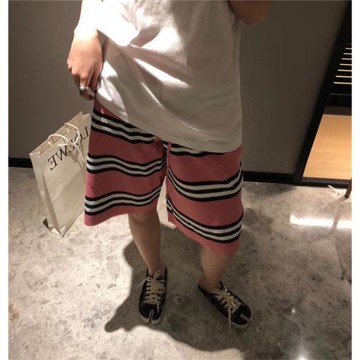 26夏撞色條紋運動短褲撞色情侶冰絲針織直筒休閑褲顯瘦寬松闊腿褲