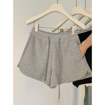 簡約灰色運動短褲女冬季2025新款高腰寬松闊腿休閑抽繩衛褲子