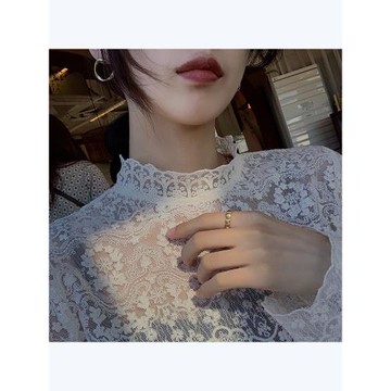 立領秋季蕾絲打底衫女長袖洋氣內搭春秋花邊秋冬寬松韓版百搭薄款