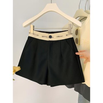 高腰拼色西裝短褲女秋季2025新款黑色時尚休閑百搭a字型闊腿熱褲