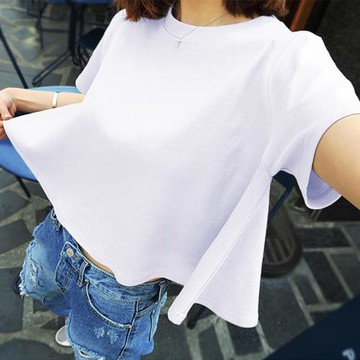 bf韓范百搭短款t恤女夏寬松短袖簡約白色純棉高腰個性上衣學院風