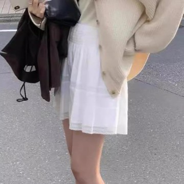 短裙女2025新款OUNCE松緊腰傘裙日系蕾絲花邊褶皺a字半身裙女春秋