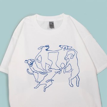 i了藝術家系列 馬蒂斯“跳舞”的狗印花T恤短袖 跳舞的豬MATISSE