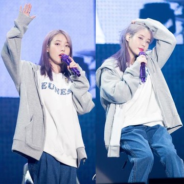 IU李知恩同款光州新專周邊上衣印花寬松ins拉鏈連帽加絨衛衣外套