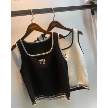 2024開春百搭打底針織衫冰絲吊帶小背心字母刺繡修身顯瘦無袖上衣