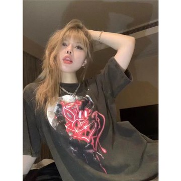 jennie金智妮同款演唱會ins圓領寬松愛心字母印花情侶純棉短袖T恤
