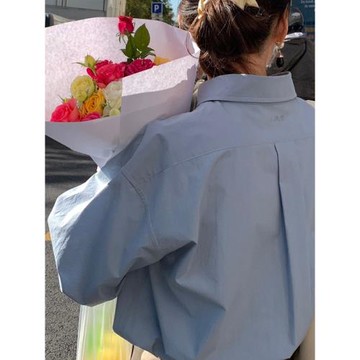 點我下載美娜LEROBE藍色襯衫女設計感小眾2025新款上衣長袖純棉職業襯衣女