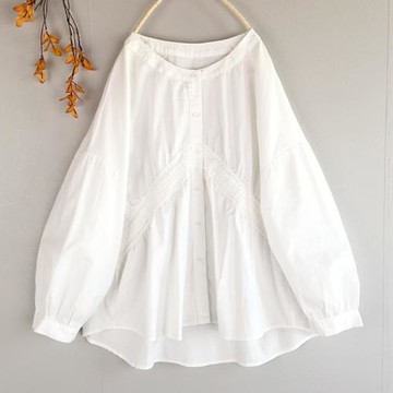 可愛巧緻的A字裙輪廓,透氣性佳的夏日亞麻罩衫,帶有細緻打褶設計的白色襯衫 250422-1