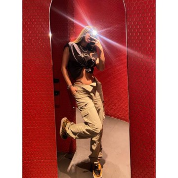 POPBONNIE褲子女運動夏季歐美復古直筒多口袋休閑純色寬松工裝褲