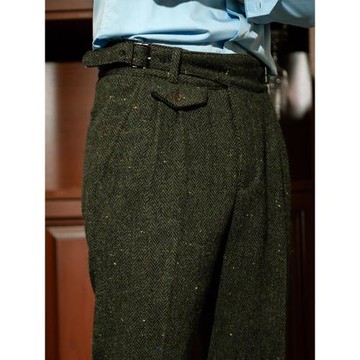 冬季復古男士廓爾格微錐休閑褲 純羊毛軍綠魚骨紋粗花呢GURKHA褲