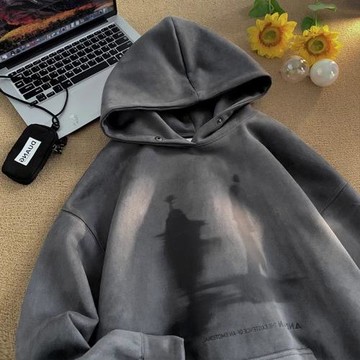 Printed hooded pullover loose sweater印花連帽套頭寬松衛衣T恤