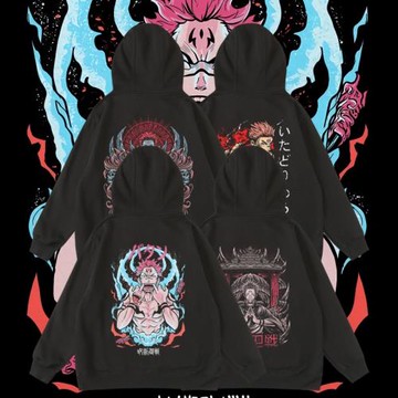 動漫咒術回戰虎杖悠仁卡通潮牌周邊連帽加絨秋冬寬松套頭男女衛衣