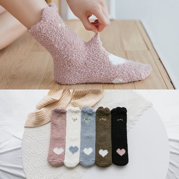 網紅襪子女冬天厚款超火睡覺襪金絲耳朵加絨愛心家具襪室內地板襪