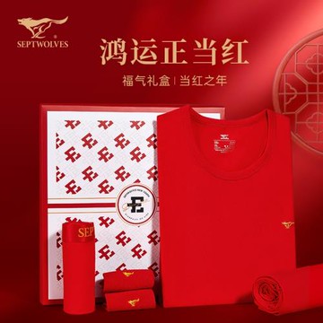 七匹狼男士鴻運保暖內衣套裝禮盒新款紅色時尚男裝襪子內褲