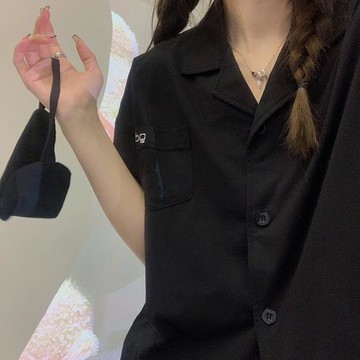 黑色簡約休閑女生睡衣夏季短袖純棉日系紐扣小翻領家居服夏天套裝
