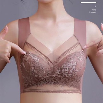 點我下載春季款一體式固定杯無痕收副乳背心內衣女聚攏美背無鋼圈蕾絲文胸