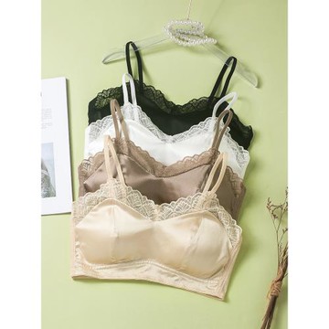 新款夏季真絲緞面蕾絲性感文胸 無鋼圈桑蠶絲大碼薄款舒適內衣