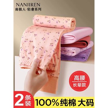 南極人媽媽純棉秋褲女高腰薄款保暖襯褲大碼寬松中老年人全棉毛褲