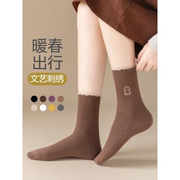 中筒襪子女春秋款棉質防臭吸汗透氣日系可愛堆堆襪防起球長筒襪