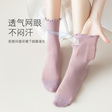 木耳邊堆堆襪子女夏季薄款松口月子純棉韓國中筒襪網眼夏天ins潮