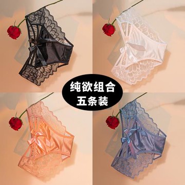 日系性感蕾絲三角褲純色少女可愛性感內褲甜美蝴蝶結舒適底褲透明