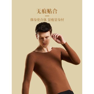 蠶絲男士保暖上衣單件秋衣德絨發熱內衣加厚加絨長袖無痕打底衫冬