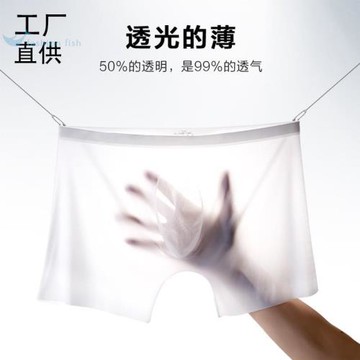 男士纖薄3d無痕透明性感內褲男純欲冰絲四季薄款透氣一片式四角wh