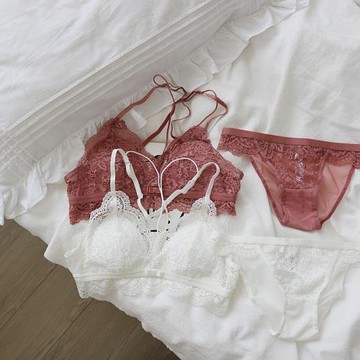 法式性感蕾絲吊帶背心式文胸超薄無鋼圈三角杯舒適美背