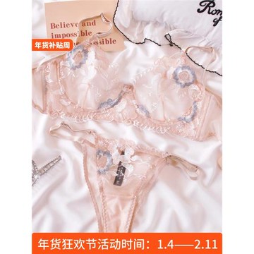 法式性感刺繡飛邊蕾絲軟鋼圈超薄兔耳朵聚攏軟骨馬甲文胸套裝內衣