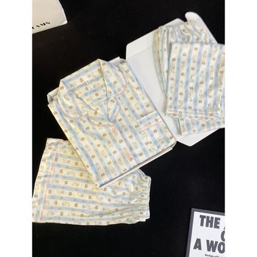 點我下載睡衣女款2024新款夏款純棉紗布短袖長褲三件套可外穿夏季薄家居服