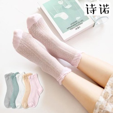 木耳邊堆堆襪子女夏季薄款松口月子純棉韓國中筒襪網眼夏天ins潮