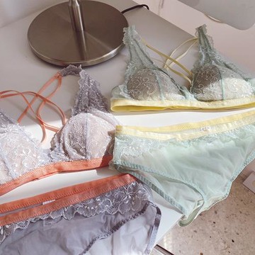 法式刺繡蕾絲夢幻三角杯無鋼圈細帶小胸內衣套裝超薄性感文胸奶罩
