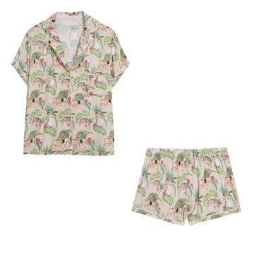 外貿卡通動漫短袖人棉綿綢家居服套裝女 顯瘦寬松睡衣短褲親膚