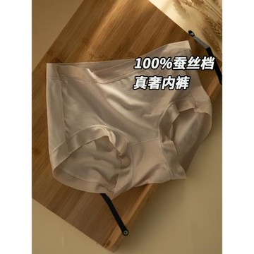 Kbra100%蠶絲檔內褲女真奢綢感舒適抑菌加長襠中腰女士三角褲夏季