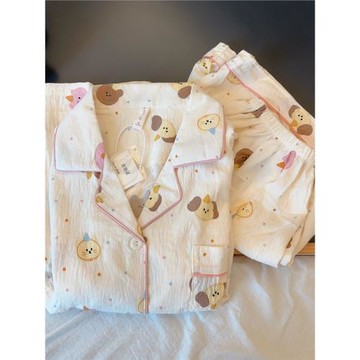 甜美日系純棉紗布睡衣女春秋季薄款長袖兩件套夏天青年家居服套裝
