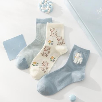caramella襪子女中筒襪純棉薄款春夏季日系可愛卡通兔子小羊運動