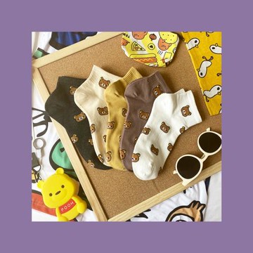 5雙小熊襪子女短襪韓版ulzzang純棉卡通可愛襪夏季低幫淺口船襪潮