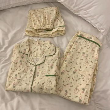 春節上新 紅書同款雙層紗慵懶可愛日系睡衣全棉家居服長袖套裝