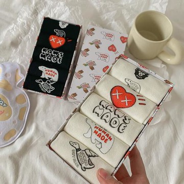 純棉襪盒裝卡瓦斯襪子男ins潮牌船襪印花小鴨運動防臭情侶卡通襪