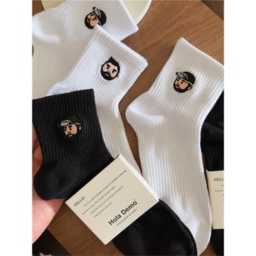 4雙男士襪子男生運動短襪純棉卡通刺繡防臭腳透氣短筒襪白色百搭