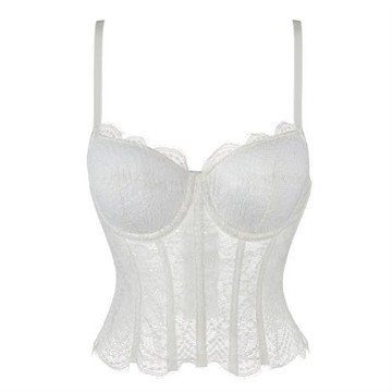 新款白色網紗蕾絲雙吊帶有罩杯女士抹胸塑身衣亞馬遜temu跨境貨源