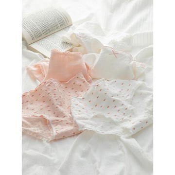 桃蜜糖水溶花邊純棉蕾絲洛麗塔文胸內褲套裝棉質內衣薄杯甜美少女