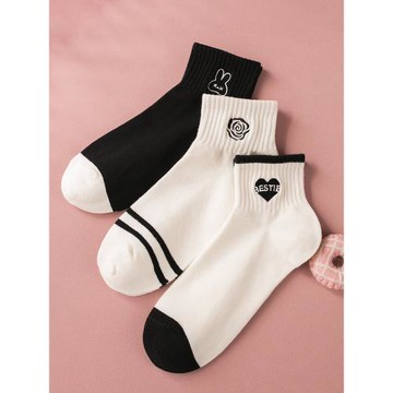 跨境襪子女中筒ins中筒愛心潮白色長襪運動學院風
