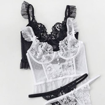 性感塑身衣超薄透明蕾絲吊帶鋼托胸罩黑色白色女款