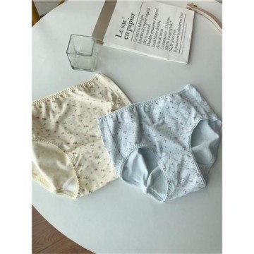 Balletcore.中腰三角內褲(米白-玫瑰碎花)