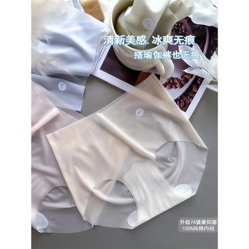 草本初色面膜內褲女士冰絲涼感無痕桑蠶絲抑菌檔透氣中腰三角褲