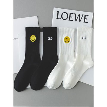 笑臉襪子男生秋季中筒可愛創意搞怪卡通黑白棉長襪青少年高腰潮流