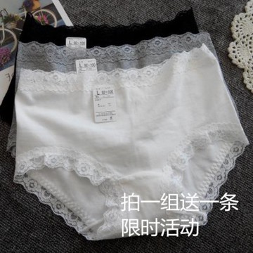 純棉中腰蕾絲邊三角內褲女式舒適透氣全棉舒適大碼胖無痕新款褲頭